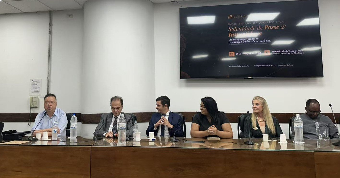 🇧🇷 圣保罗讯 3月31日,艾洛斯商业俱乐部(Elos Business Club)在巴西圣保罗市政厅隆重举行主席团及各战略委员会成员换届与新成员就职典礼。巴中国际发展商会(CCDIBC)会长胡忠伟作为特邀嘉宾出席活动,入座主席台并发表致辞。